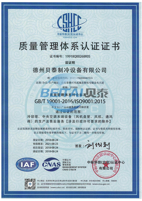 貝泰制冷 —— 專門致力于冷卻塔、中央空調(diào)、空調(diào)末端配套產(chǎn)品、和玻璃鋼制品的研發(fā)、制造、銷售和服務(wù)于一體的現(xiàn)代化企業(yè)