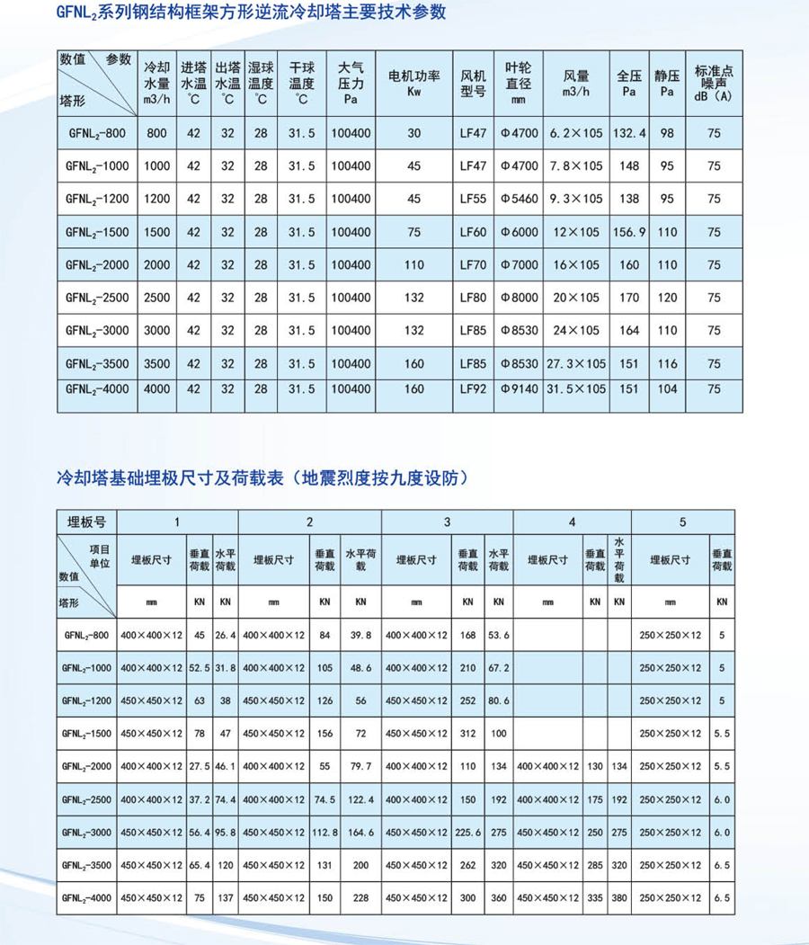 工業(yè)型玻璃鋼冷卻塔,室友機械工業(yè)部第四設計研究院在原設計的同類塔測試數(shù)據(jù)基礎上改進設計的。本設計的特點是冷卻塔風機配有變扭矩雙速電機;當氣溫較低時,例如晚上,電機開低速,冷卻噪聲可低3-5dB(A)。此外,選用雙速電機節(jié)電顯著。多臺冷卻塔配單速電機時,為了節(jié)電,當空氣濕球溫度低時,可停部分電機,但仍比用雙速電機(以年計)多耗電40%。
